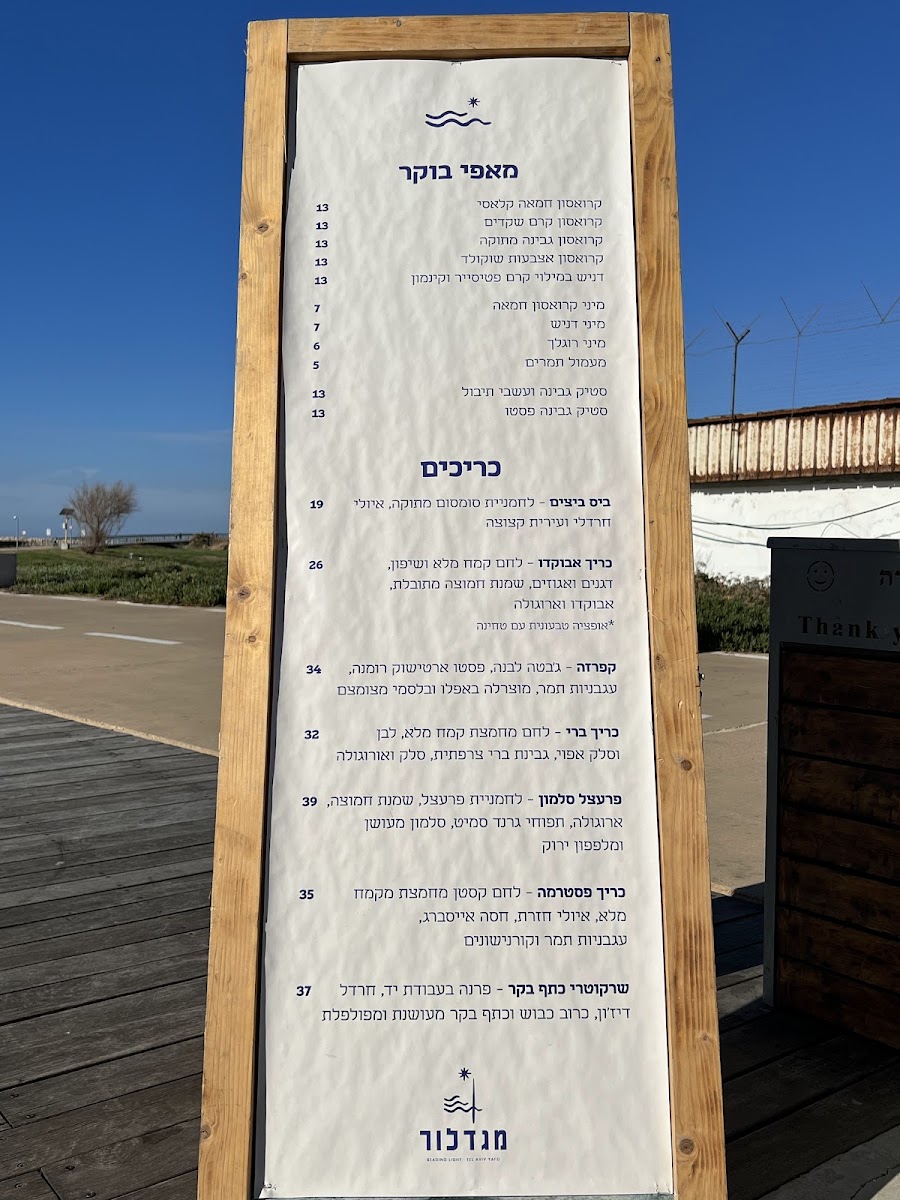 The menu at Migdalor Cafe reflects the relaxed and breezy vibe of its seaside setting. Offering a simple selection of comforting drinks and casual bites, it caters well to those stopping by for a light refreshment or a laid-back snack by the water.